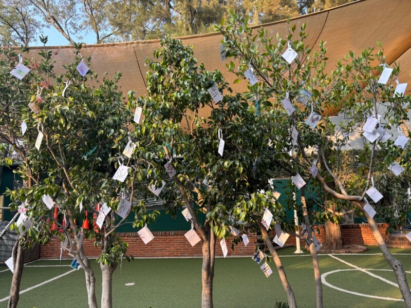 Una de nuestras tradiciones favoritas es el árbol de los buenos deseos, donde se cuelgan dibujos y mensajes para el mundo, nuestra querida comunidad, familia y amigos. Celebramos esta tradición que ayuda a fomentar la empatía, la bondad y una mentalidad positiva, mientras seguimos construyendo relaciones sólidas y una sociedad compasiva.